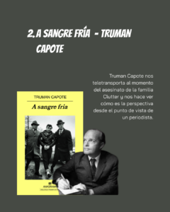En el ámbito más literario, Truman Capote nos teletransporta al momento del asesinato de la familia Clutter y nos hace ver cómo es la perspectiva desde el punto de vista de un periodista. Con él se visualizó una nueva forma de acercarse a la realidad y conseguir capturar y emocionar al lector. Además, el periodista y escritor estadounidense nos enseña que este oficio es tan flexible y amplio como las mentes que ocupa.