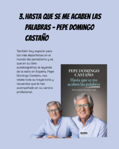 También hay espacio para los más deportistas en el mundo del periodismo y es que, en su libro autobiográfico, la leyenda de la radio en España, Pepe Domingo Castaño, nos relata toda su trayectoria y recuerdos que le han acompañado en su carrera profesional. Probando distintos ámbitos laborales, desde la música hasta la escritura, el periodista de Padrón se erigió como una de las figuras radiofónicas más destacables del país.