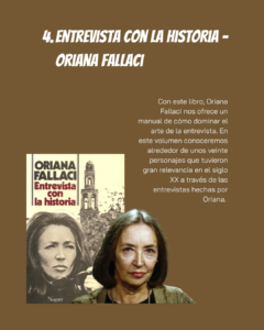 Con este libro, Oriana Fallaci nos ofrece un manual de cómo dominar el arte de la entrevista. En este volumen conoceremos alrededor de unos veinte personajes que tuvieron gran relevancia en el siglo XX a través de las entrevistas hechas por la propia Oriana. En resumen, con estas entrevistas conoceremos un poco más el siglo pasado y aprenderemos cómo realizar entrevistas con gran maestría y soltura.