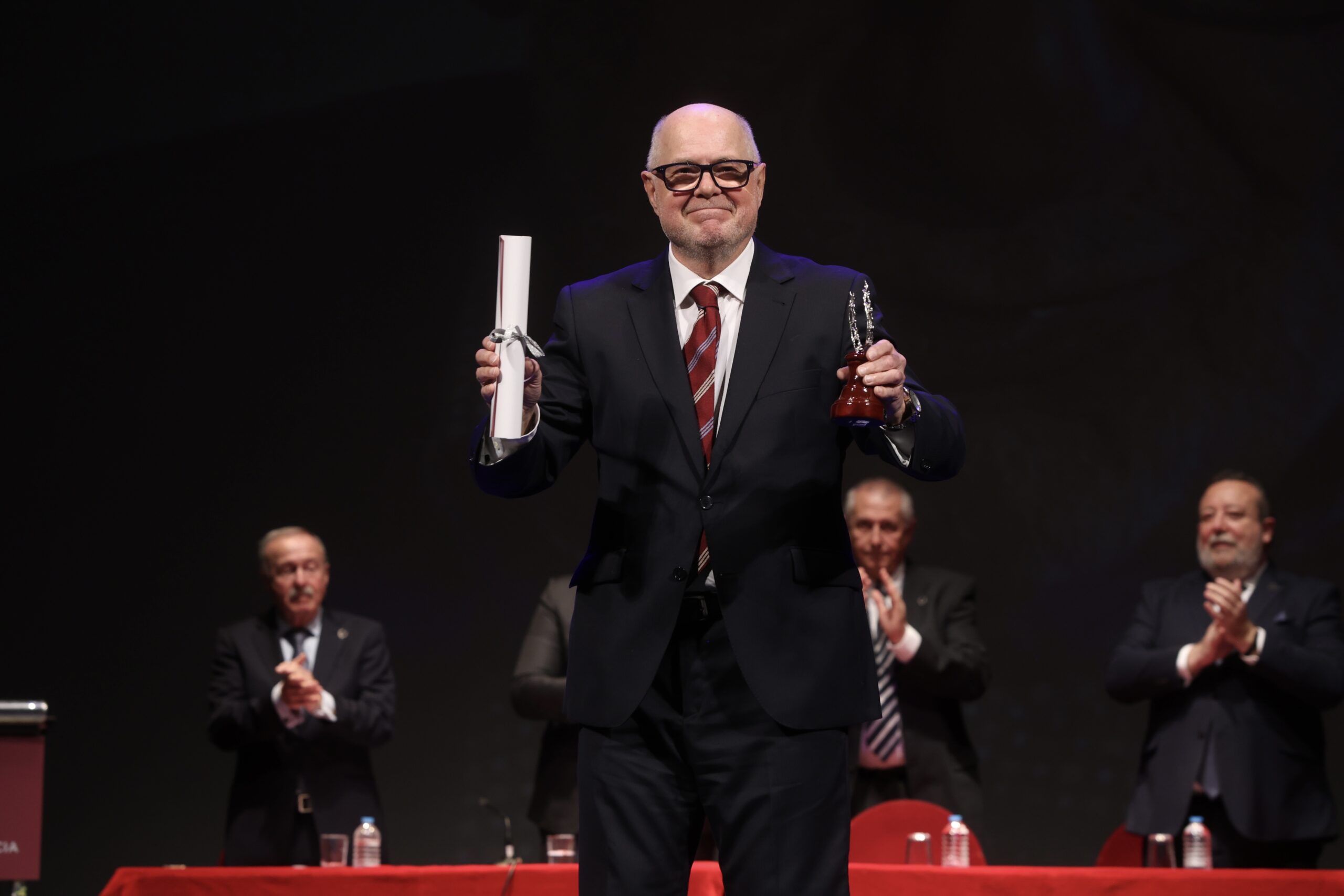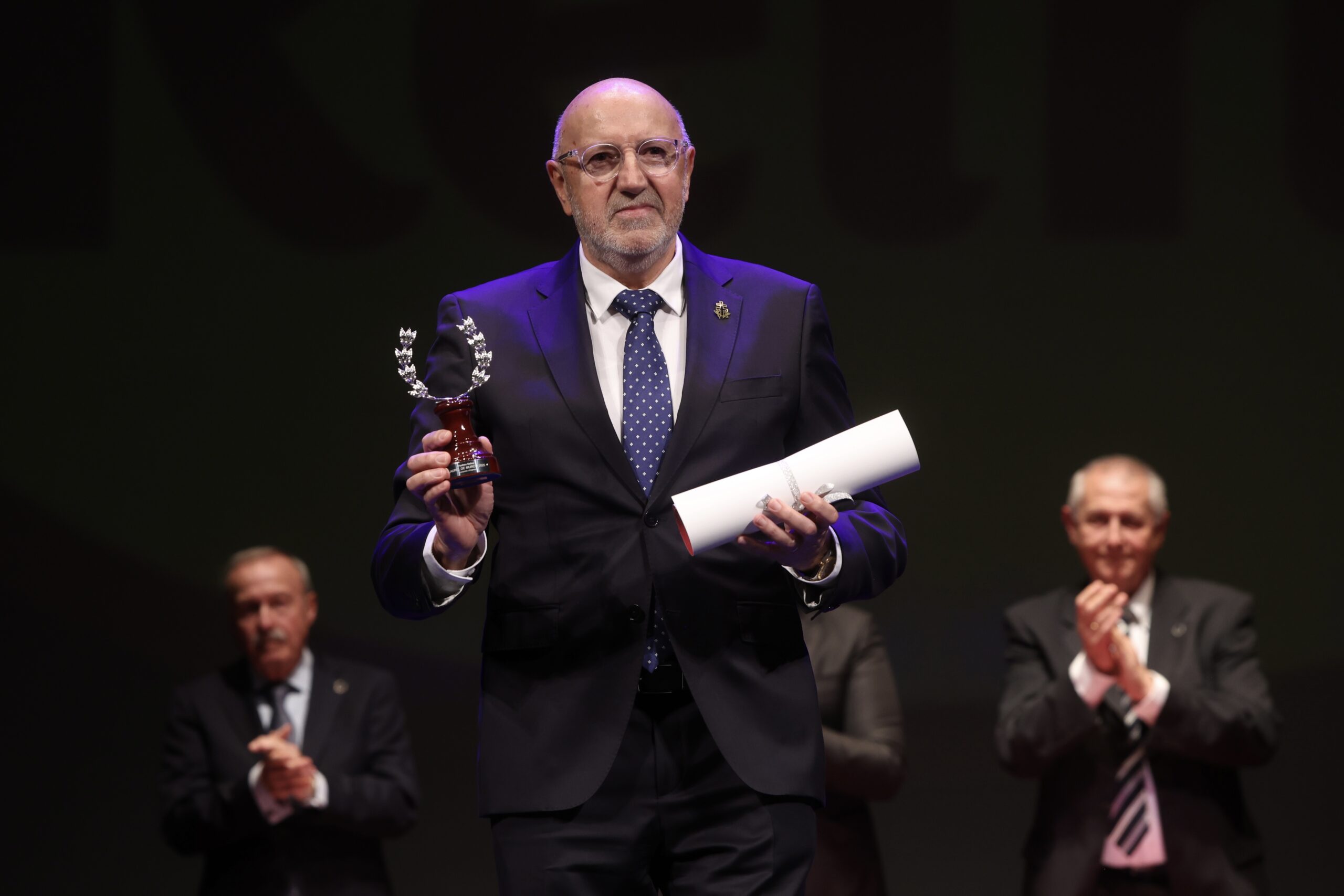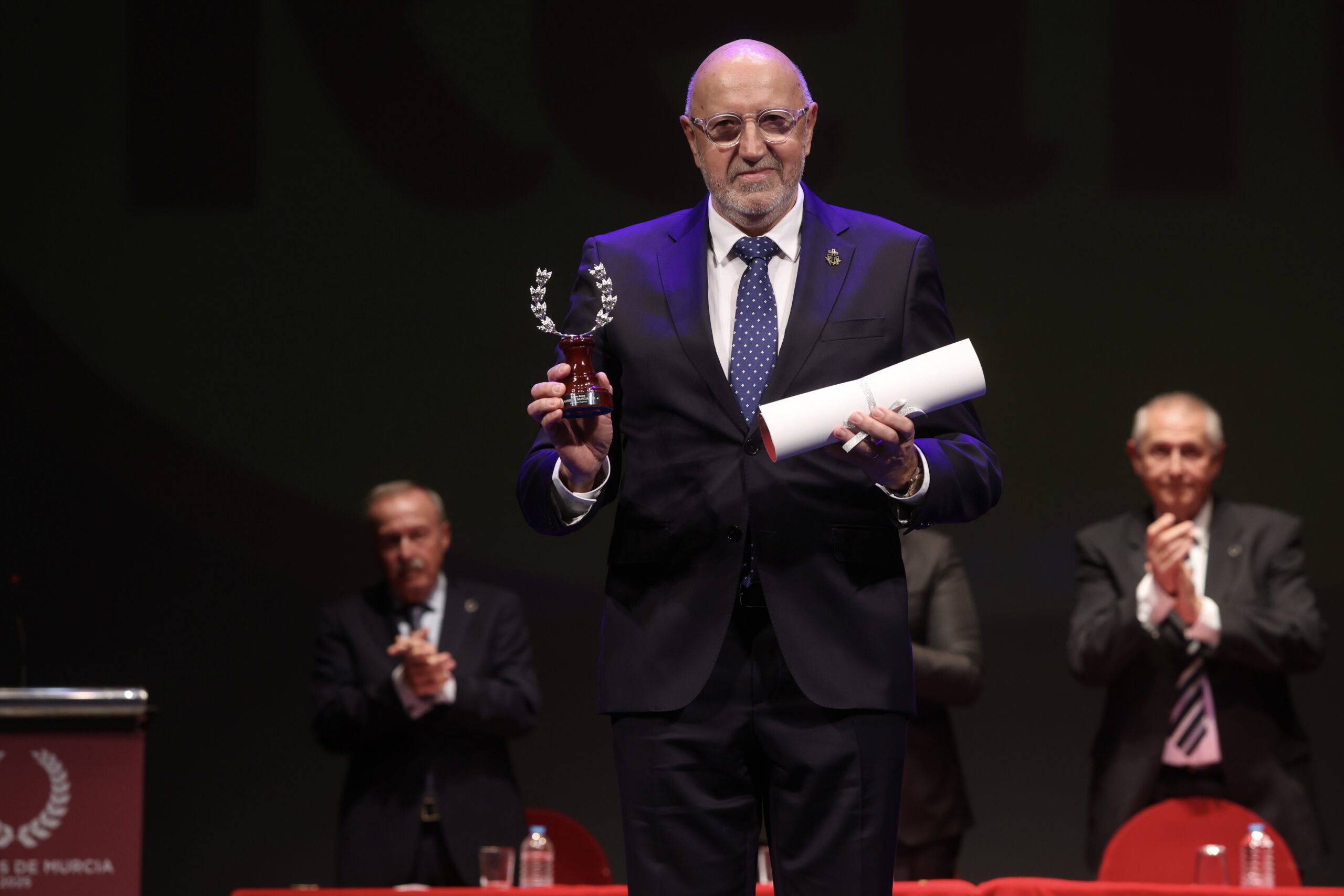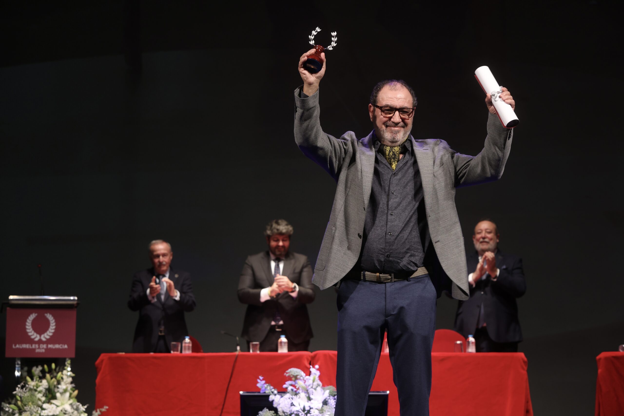Tras él y la intervención de Antonio Gómez-Fayrén, presidente del Consejo Rector, el doctor Vicente Vicente, en representación de todos los premiados, y José María Marín, ante la ausencia de José Manuel Garrido, como Laurel Extraordinario, fueron los elegidos para ocupar el atril de un respetuoso Teatro Romea que siguió con atención cada detalle de una gala alabada por su elegancia y brevedad, así como por la excelencia de sus premiados.