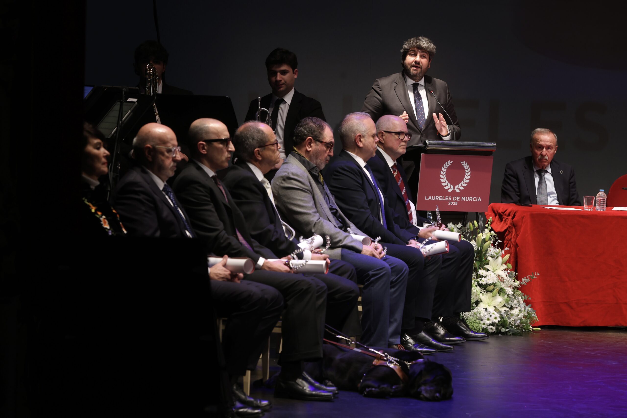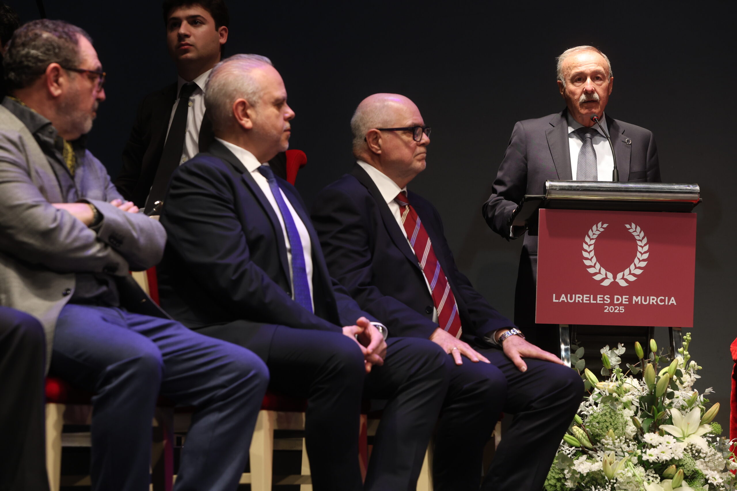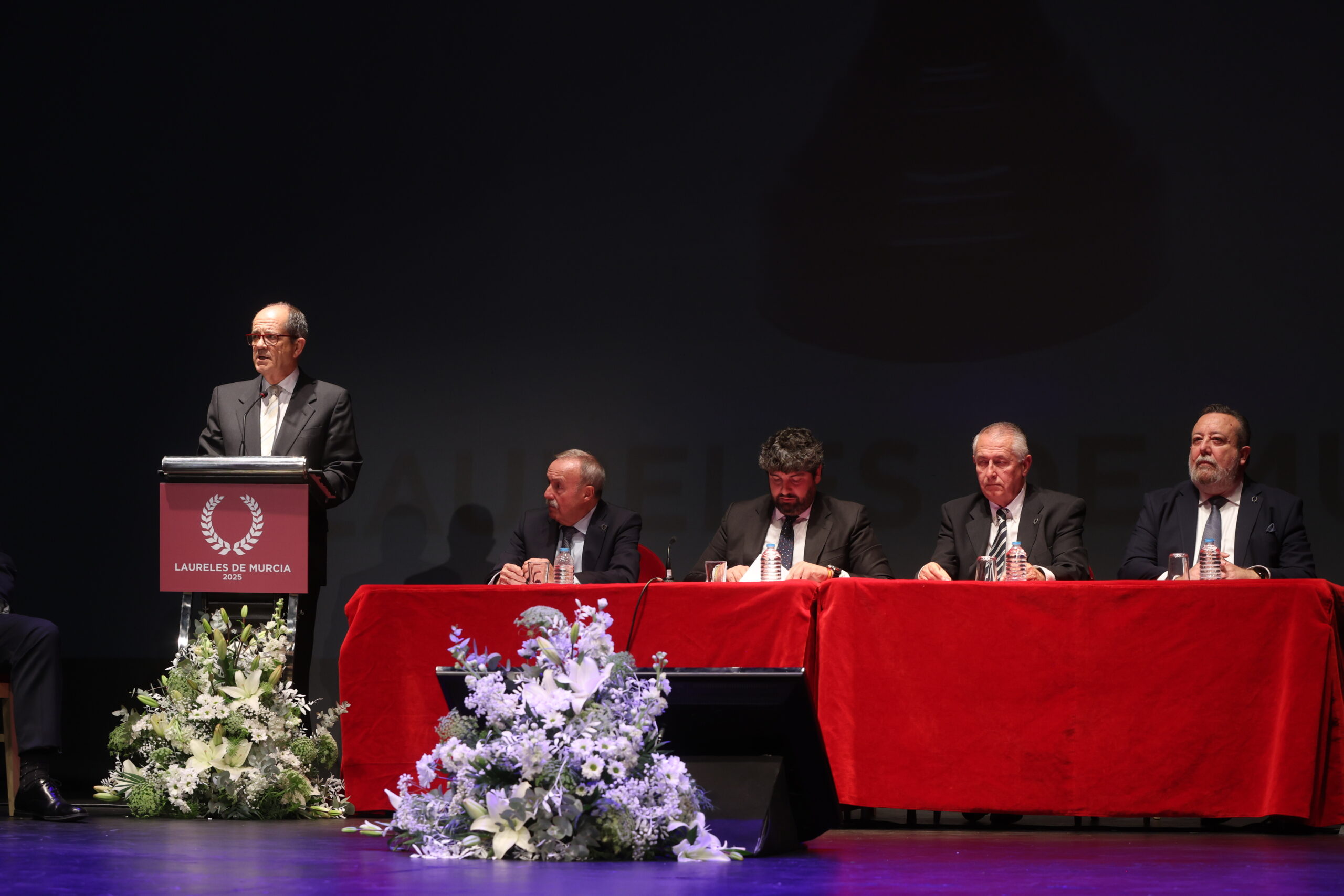 En el apartado de discursos, la franqueza de Miguel Massotti, decano del Colegio de Periodistas, volvió a ser uno de los aspectos más destacados de su intervención; la primera del acto solemne de entrega de los Laureles de Murcia 2025.