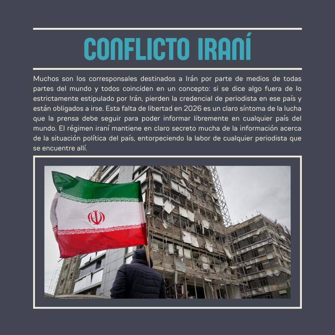 Muchos son los corresponsales destinados a Irán por parte de medios de todas partes del mundo y todos coinciden en un concepto: si se dice algo fuera de lo estrictamente estipulado por Irán, pierden la credencial de periodista en ese país y están obligados a irse. Esta falta de libertad en 2026 es un claro síntoma de la lucha que la prensa debe seguir para poder informar libremente en cualquier país del mundo. El régimen iraní mantiene en claro secreto mucha de la información acerca de la situación política del país, entorpeciendo la labor de cualquier periodista que se encuentre allí.