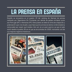 A pesar de estos hitos, aún queda mucho por lo que avanzar, y es que España se encuentra en el puesto 23 del ranking de libertad de prensa realizado por Reporteros Sin Fronteras, por detrás de países similares como son Portugal (8º) o Alemania (11º). Este puesto se debe al clima de crispación y polarización que vive el país y que hace que la prensa se sienta condicionada (y censurada) por según qué medios. Aun así, es un gran avance, ya que el país subió desde el puesto 30 en el que se encontraba en 2025, marcando uno de sus mejores registros históricos.